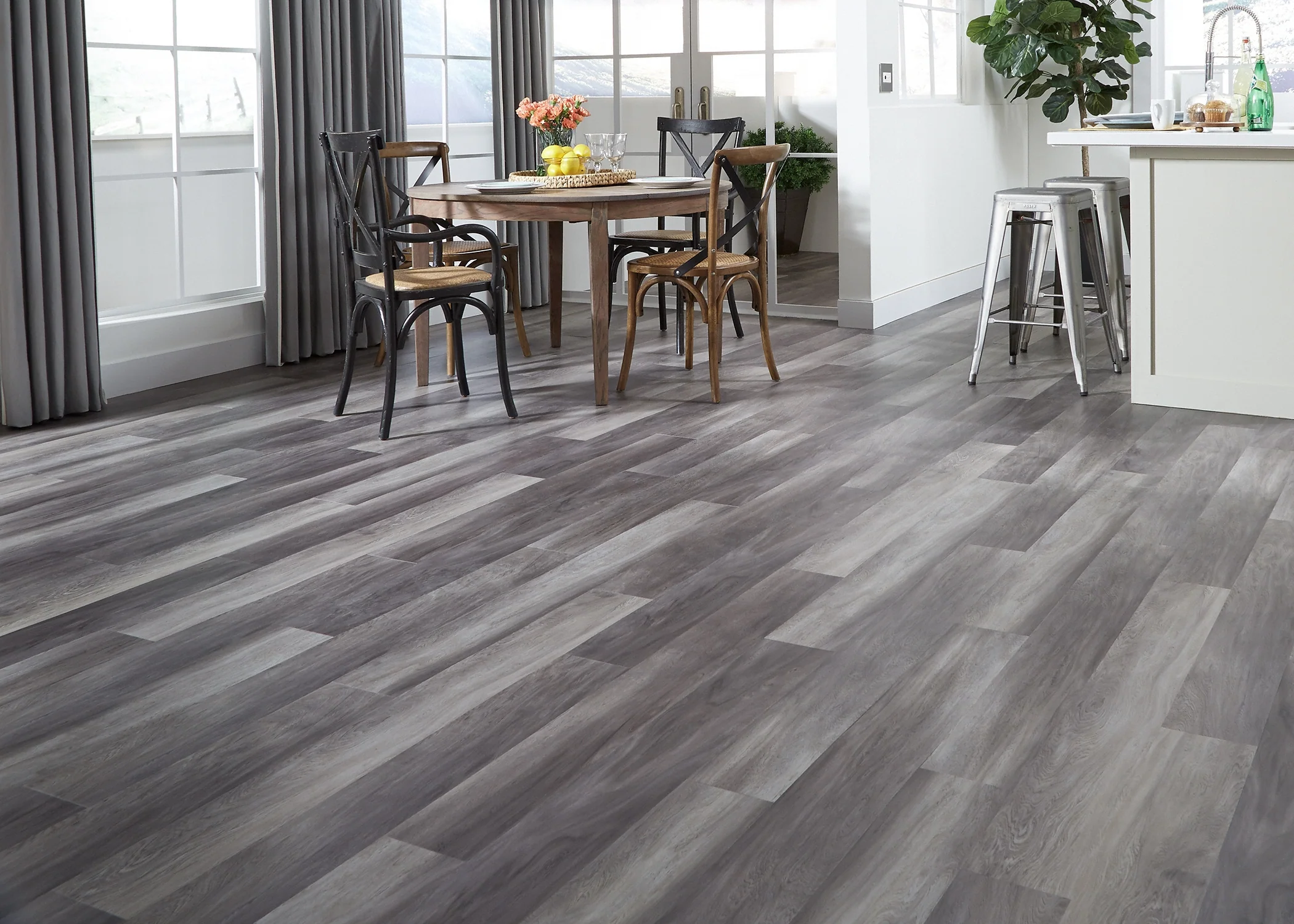 Sheet vinyl, LVP, LVT, and commercial-grade options.